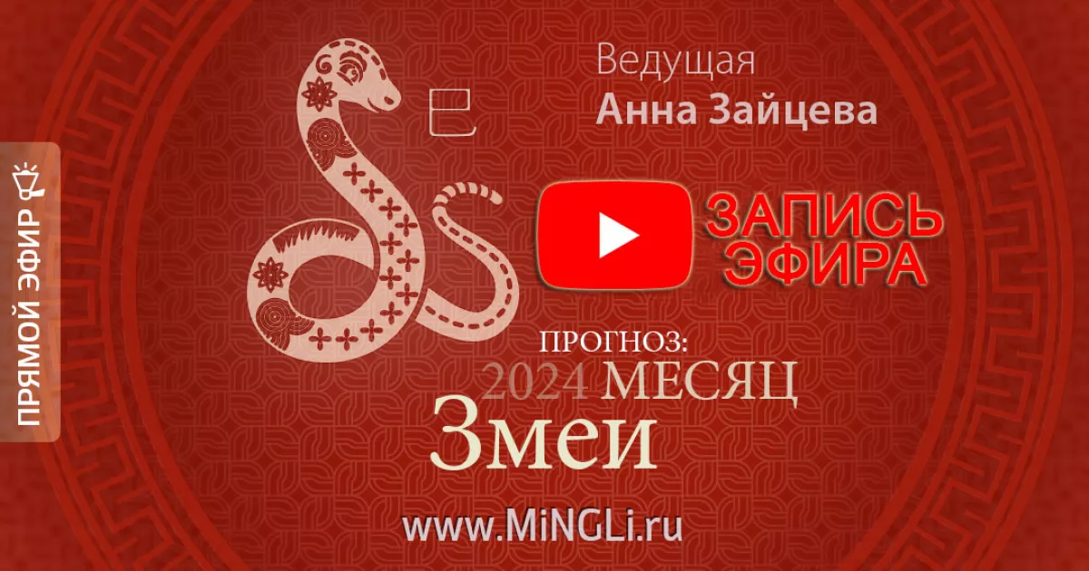 24 Апреля 2024 состоялся прямой эфир с Анной Зайцевой на тему «Бацзы: прогноз на месяц Змеи (Май) 2024 года»