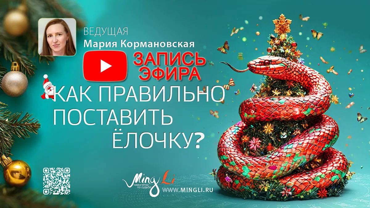 03 Декабря состоялся прямой эфир эксперта и преподавателя Фэн Шуй школы Mingli Марии Кормановской на тему «Как правильно поставить ёлочку 2024-2025»