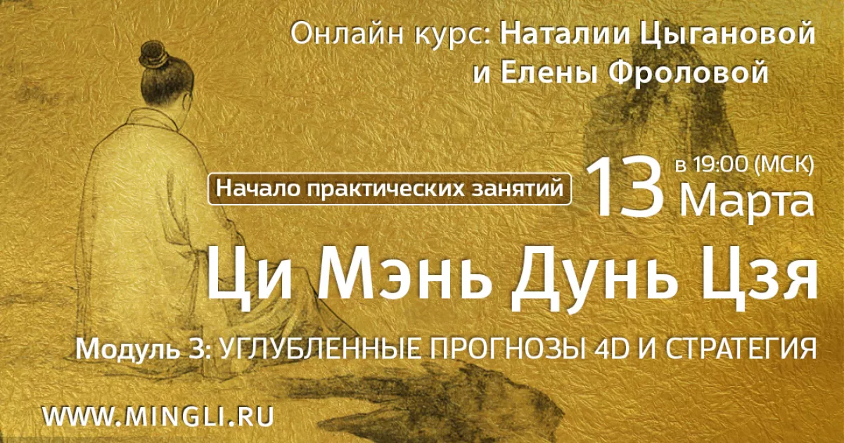Друзья! Приглашаем вас на курс Ци Мэнь Дунь Цзя «Прогнозы 4D – углубленно», который посвящен прогнозам на различные темы. Если на втором модуле мы проходили простые прогнозы, то на третьем углубимся в карты Ци Мэнь и научимся читать их послойно, извлекая все больше информации. В обучении используются как примеры из нашей практики, так и примеры, основанные на вопросах участников программы.