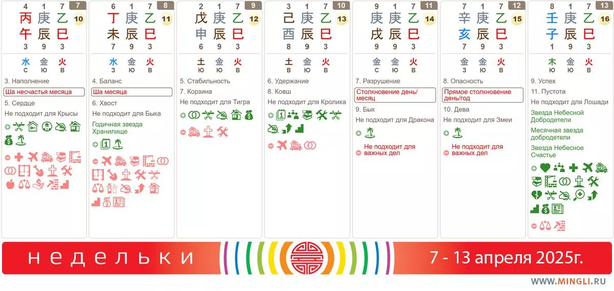 10 апреля, четверг. Симпатичный день, подойдет для планирования, переговоров, начала учебы, ремонта, подписания контрактов. Сила дня (ци, которое он дает) также невелика.
