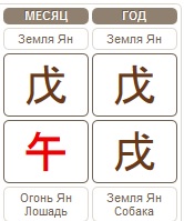 Если в Вашей карте Ба Цзы есть Лошадь 午, или тем более две, то создается ситуация самонаказания. Это ошибки, которые мы совершаем сами, возможны поспешные действия или необдуманные слова, решения. Чтобы не попасть в эту ловушку, будьте внимательнее, чем обычно с теми людьми и в тех сферах жизни, которые представляет для нас Лошадь. Это вы можете определить по своей карте Ба Цзы, рассчитав ее на калькуляторе.