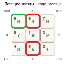 Северо-восток. Звезды 3 и 4 имеют «деревянную природу», а северо-восток у нас это сектор Земли, поэтому налицо конфликт энергий. Нежелательно находиться в этом секторе тем, у кого проблемы с желчным пузырем и печенью, могут быть обострения. Старайтесь контролировать свои расходы, могут быть незапланированные траты. Может потянуть на романтические приключения, которые навредят семье и репутации, осторожнее с поклонниками. Поставьте здесь предмет красного цвета, например треугольную красную свечу.