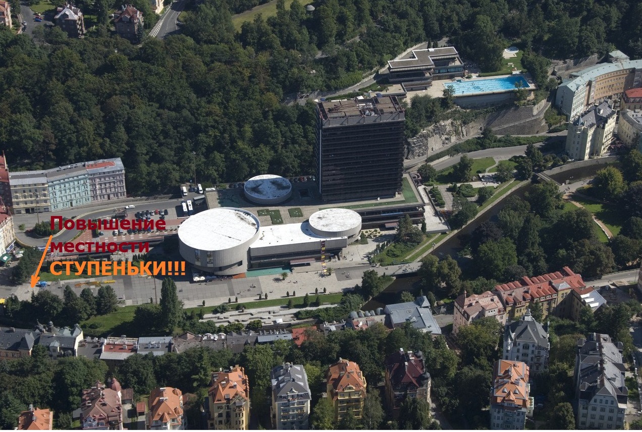 Но несмотря на свою внешность, отель процветает. Номера в нем совсем не дешевые, хотя, судя по отзывам, внутри здание нуждается в ремонте. И сносить это чудище, чтобы на его месте построить здание, более подходящее духу Карловых Вар,  никто не собирается. Почему так? Вот над этой загадкой я и медитировала во время прогулок. Пока однажды не поняла, что «Термал» построен в минтане Карловых Вар на точке шуе!  Точка шуе – это та загадочная точка на местности, которую можно сравнить только с местом на родильном кресле, куда выходит ребенок.