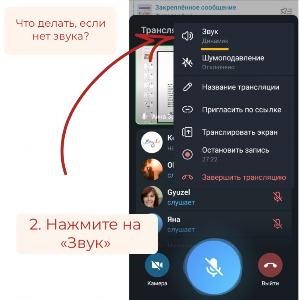 Часто бывает так, что вы благополучно присоединились к трансляции, но ничего не слышите. Что же делать в таком случае? Смотрите фото-инструкции ниже)