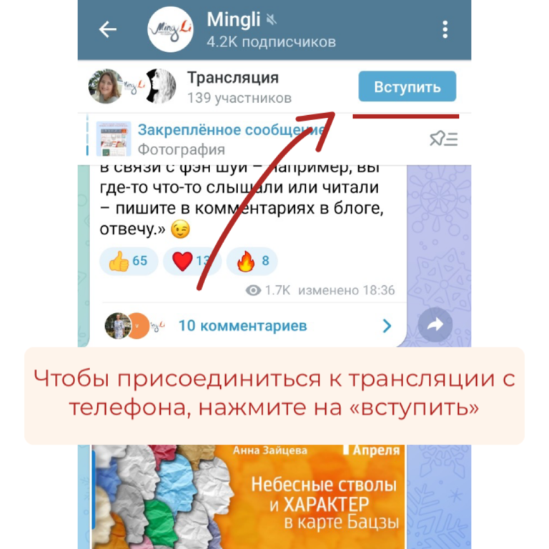Теперь давайте разберемся, как присоединиться к трансляции через мобильную версию Telegram. Смотрите фото-инструкции ниже.
