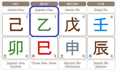 Вашу стихию определяет Небесный Ствол (верхний иероглиф) дня рождения. Также он называется Элементом Личности, или Господином Дня. Всего таких Небесных стволов десять: пять стихий, каждая из которых может быть иньской или янской.