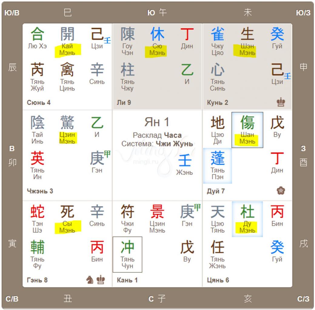 Ци Мэнь – система достаточно сложная и используется с различными целями. Это и прогнозы, и чтение жизни, и выбор дат, и повышение удачи. Как известно, «слона есть надо по кусочкам», поэтому давайте посмотрим на карту Ци Мэнь и найдем в ней нечто ценное, что можно быстро использовать.