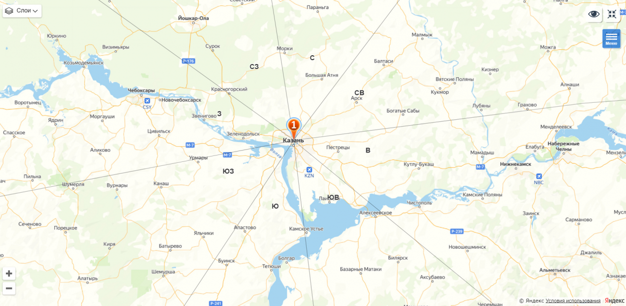 Давайте посмотрим на карту Казани и окружающей ее местности.