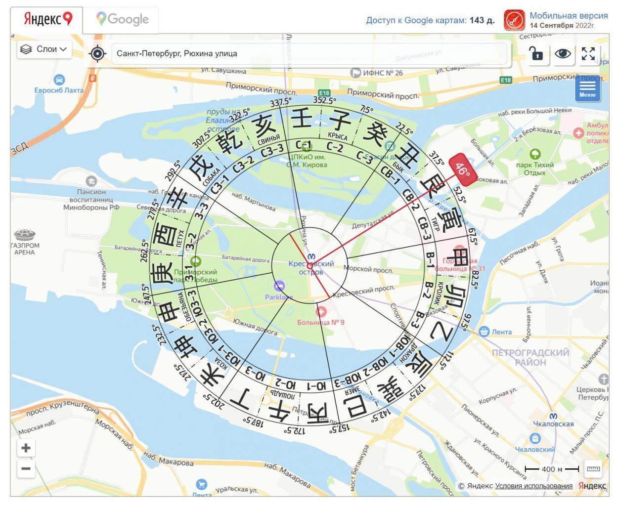 - Наметьте конечную точку в нужном секторе от вашего дома или офиса (направление тоже указано в тексте).