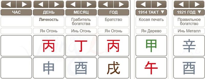 Без часа – это жалко, конечно, но есть как есть. Видим, что внизу у нас сезон Металла. Видим, что сверху Огонь. Вариантов всего два: или слабая карта или визави (карта с двумя элементами). Проверила. Действительно, Огонь и Металл – хороши. Да и Дерево, поддерживающее Огонь, тоже норм. Но это все по полезности элементов. Такты поддерживают Огонь в большинстве своем, но на Металлических годах тоже много плюсов. Вопрос о типе карты остался открытым.