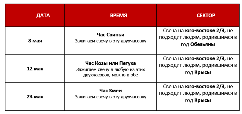 Очень хорошо здесь проводить активации или поставить активный предмет на весь месяц, запустить его можно будет – 8 мая в час Змеи, день не подходит для родившихся в год Обезьяны, или 10 мая в час Кролика, день не подходит родившимся в год Собаки.