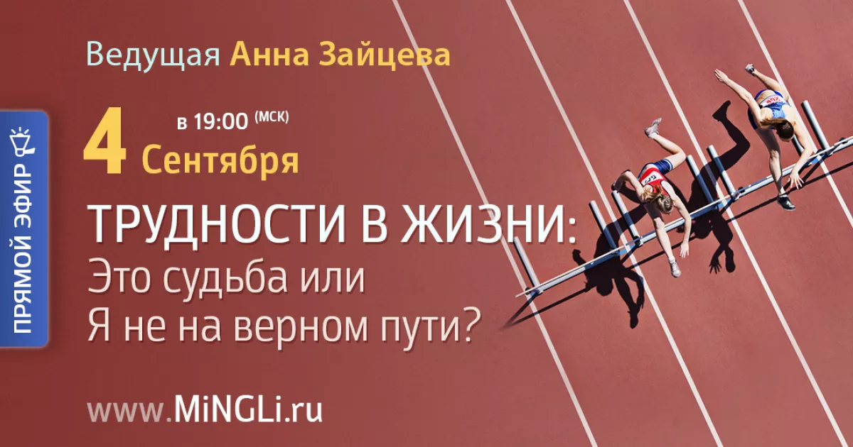 Приглашаем вас 04 Сентября в 19:00 на открытый вебинар «Трудности в жизни: это судьба или я не на верном пути?»