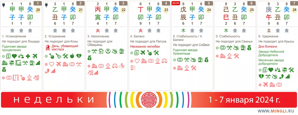 1 января, понедельник. Вот уж идеальный день для начала новой жизни – мало того, что 1 января, понедельник, так еще и день Установления и первый из 60-ти цзя цзы. Но! Действовать начинать рано! Найдите время для того, чтобы посидеть, подумать, представить свой год во всех красках, распланировать его и убедиться, что ничего не забыли.