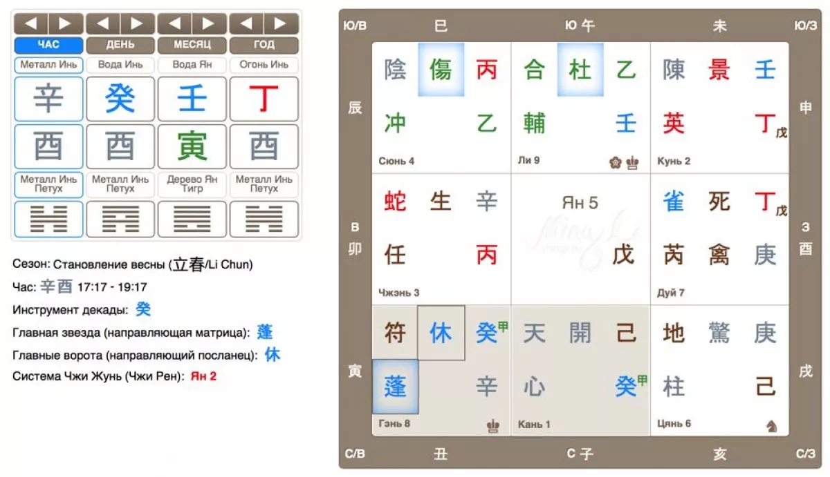 Своевременные дома НС дня и НС часа, счастливые врата и соотношение врат около хозяйки: можно найти. Кроме того, в одном полукольце. И около потери Синь счастливые врата, счастливая звезда и расклад. Хотя и трудно самой хозяйке Гуй: пустой дом и врата (её действия) ограничены и подразумевают скорее малоэффективность. Пустота пробивается домом Грабителя Рэн (возможно коллегой) и вор Тян Пэн около хозяйки и Тёмный воин контролирует хозяйку: предмет украден. О грабеже говорит и гексаграмма хозяйки. Но органы следствия Байху пробивают вора Тян Пэн, а Шан Мэн(опять же органы) преодолевают Тёмного воина, значит найдут. Подозрение падает и на саму хозяйку